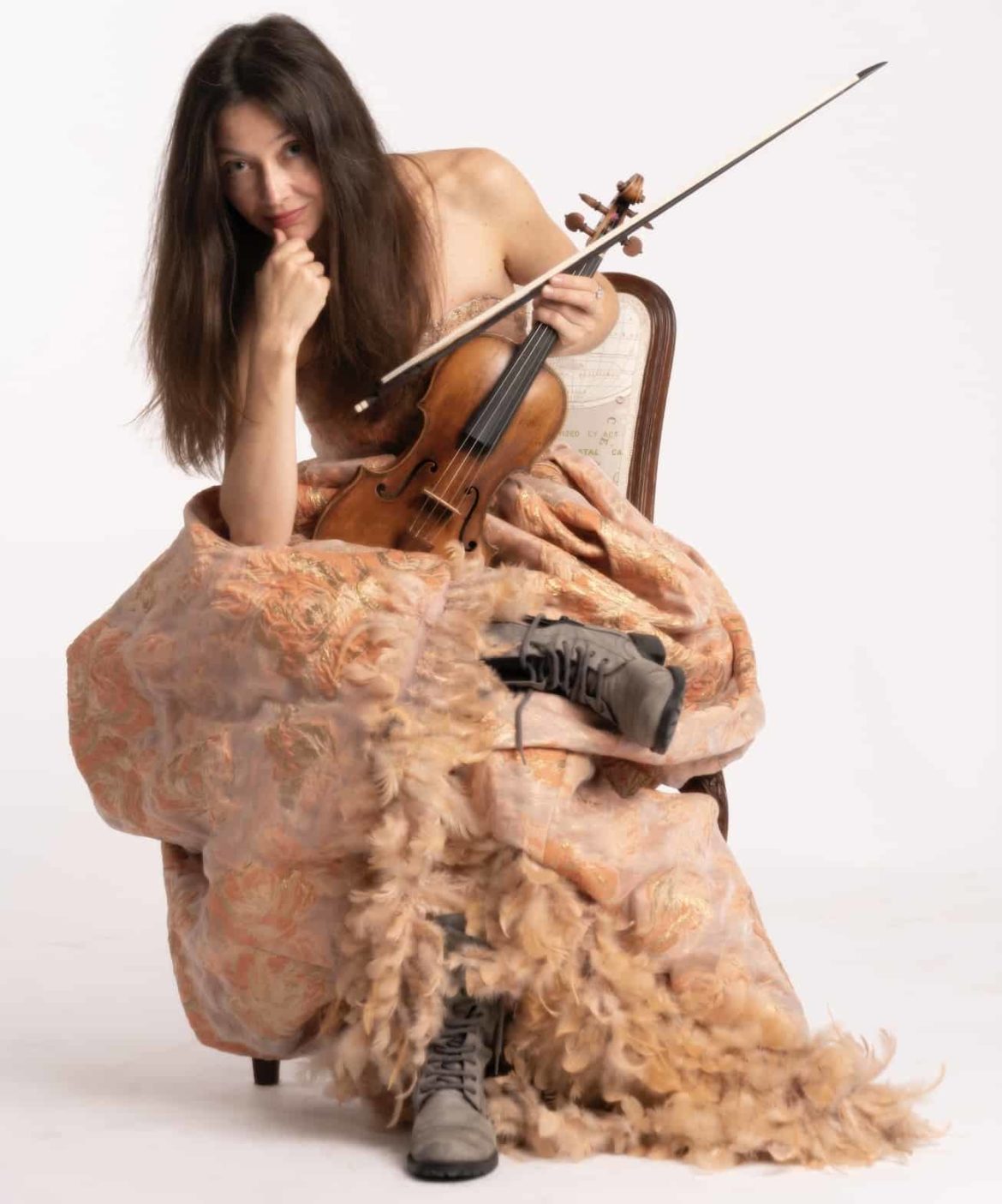 Son ambas cosas. Es una manera mía, muy íntima, de relacionarme con la música y con los demás. No me gusta explicar mis conceptos, sino apenas que lleguen los resultados. Creo mucho en la fuerza del símbolo, y en la inmediatez que tiene para comunicar ideas. (Como ejemplo: Cuando me pongo a jugar al Pinball con un vestido barroco y mi estuche de violín al lado, como si llegara de un ensayo, estoy contando toda una historia de cómo interpretaban (según mi idea) las chicas huérfanas de la Pietá, de cómo vivían ellas, las intérpretes de Vivaldi, la Venecia del XVIII. Hay quien quiera ver en eso un intento comercial o una frivolidad; pero, sin querer yo explicarlo, hay mucho detrás de cada imagen. Curiosamente, quien sabe y conoce, lo ve, lo entiende y lo reconoce. Quien no lo sepa, puede quedarse con un concepto muy inmediato, que vale igual, los que se quedan en la superficie por prejuicios…se quedan sin el premio. Todas estas ideas, estos trabajos con otros artistas, me enriquecen y enriquecen el trabajo, añadiendo además un plus de belleza y de interés. Y encima, me divierto mucho y me hace pasar tiempo con artistas que admiro y de los que tanto aprendo.