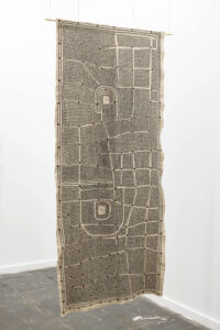 En piezas recientes como Te pregunto por el extremo último de la tierra, esa reflexión se despliega desde una sensibilidad que conecta la labor textil con la idea de uso, reparación, paisaje y persistencia. Más que una aproximación decorativa, su trabajo propone una mirada profunda hacia la materia, entendida como memoria, estructura y forma de conocimiento.